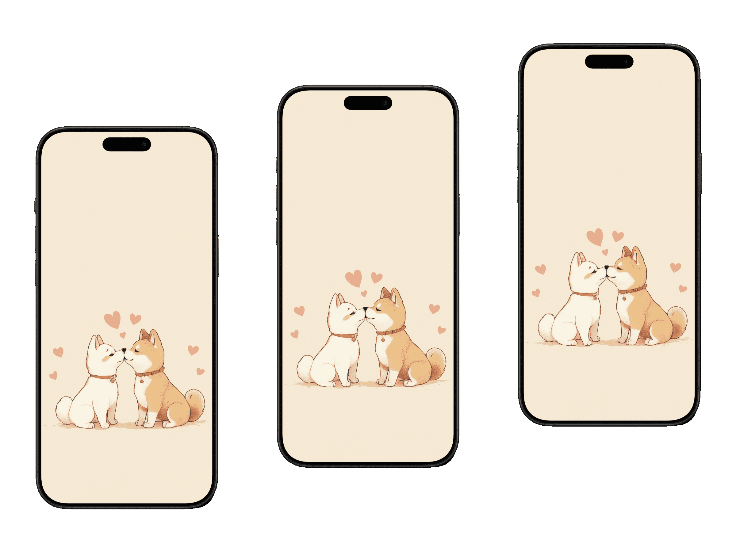 萌犬亲吻-浅粉色背景下的浪漫柴犬手机壁纸
