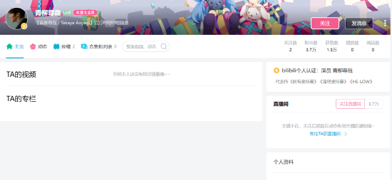 日本演员青柳尊哉宣布已开通Bilibili个人账号,截止撰文尚未发布任何内容。